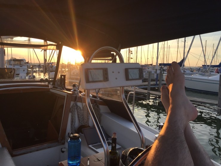 A classic impulse buy. A quick inspection and survey and everything checked out, so I bought it. Ultimately, while I had a hell of a lot of fun for one summer, I decided to sell Dambreezy after a year. Two main reasons. One, sailing on Lake Erie is not at all like sailing on the ocean. There were many weekends we went up and there simply was no wind. So sometimes we would motor out to one of the islands, but that is not sailing. Other times just hang out tied up to the pier.