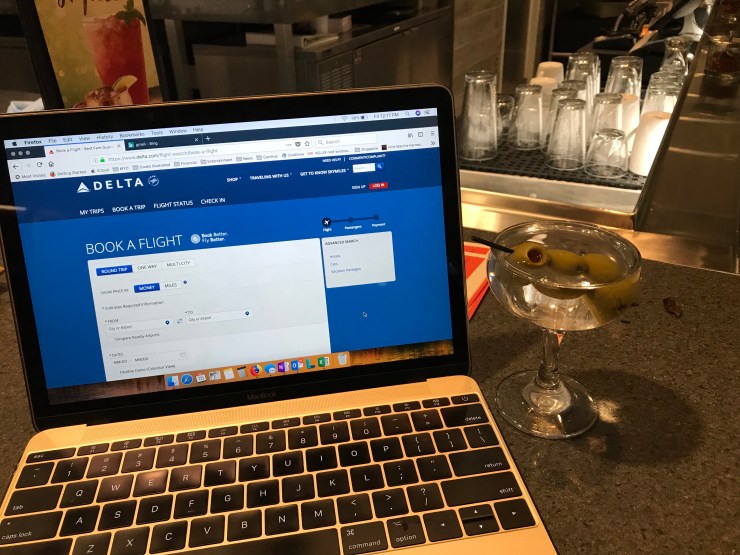 Martini #1 – Friday, February 16 approximately 700 miles north and east of Tokyo over the Pacific. A bare-bones Finlandia martini in a paper cup with no olive. Just like grandma used to make em. No frills. Just pour and man-up. I might have gotten a glass and an olive if I had been in business or 1st, but alas, I was in peasant class where I belong.