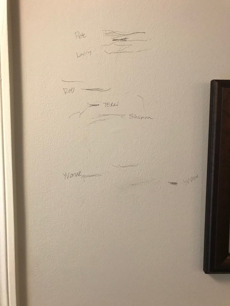 For some reason, after multiple drinks, it seemed to make sense to see who was tallest and of course we had to use the wall to mark everyone’s height. Pete won.