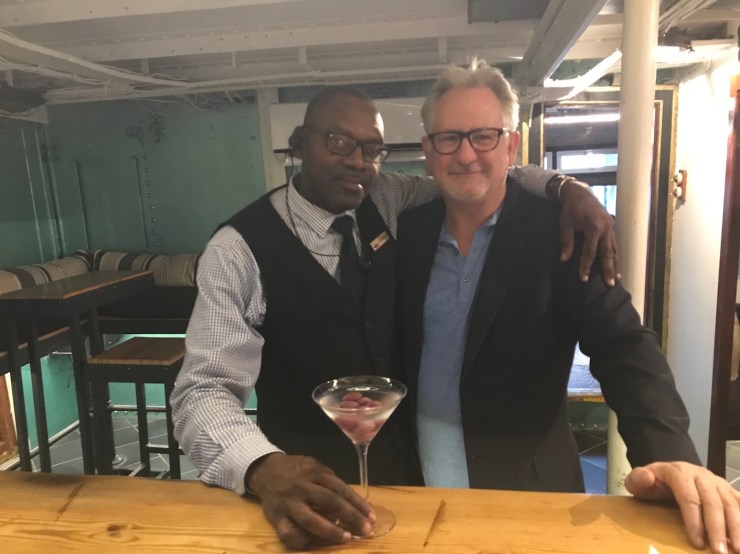 A very special FNM. For 15 years now, I have been coming to The Tug restaurant for drinks and dinner. It is over-priced and caters to tourists due to its amazing view of Atlantic sunsets and the rough African coastline. But it is a tradition I am unwilling to give up just yet. Interestingly, the same bartender has been working the bar for the entire time. Orlando. When I walked in last night he greeted me with a big hallo and came around to hug me after a Namibian handshake.