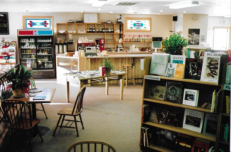 I visited multiple bookstores and coffeeshops in the pacific northwest over that year. I found many owners willing to assist but most of my information came from Jon Bolton at the amazing Salt Lake Roasting Company and my friend Shanna Wroten, who at that time was working for Jerome Eberharder at Moxie Java in Boise. The beautiful Carla Green left B. Dalton Booksellers to come run the bookstore side of the business for me so I could focus on coffee and pastry. John Goddard, best damn bartender in the northern hemisphere came to work for me. We served up coffee in the mornings and rode mountain bikes all afternoon. Kelly Green and Maureen Farrell also came to work for us. Pete Cook, lead singer and guitar player in Center Street Reggae, the house band at First National Bar, wrote my point-of-sale program from scratch. Jeff Klinger spent the entire summer with me, working 12 hour days 7-days a week to be ready to open by October. Jack Webber did much of the interior carpentry. We knocked out a huge swath of the front of the building to put in windows and let in light. When a warehouse burned down a few blocks away, we were there next morning, while smoke was still rising from the ashes, to buy up used bricks for the outdoor patio. It was an amazing collaborative effort. I bought a bunch of hardwood from the school district when they replaced an elementary school gymnasium and that was what we used for the elevated eating platform. Dennis Proksa, owner and artist at Blackrock Forge made some beautiful railings. We won an award from the city for the most beautiful retail outdoor landscape that first year.