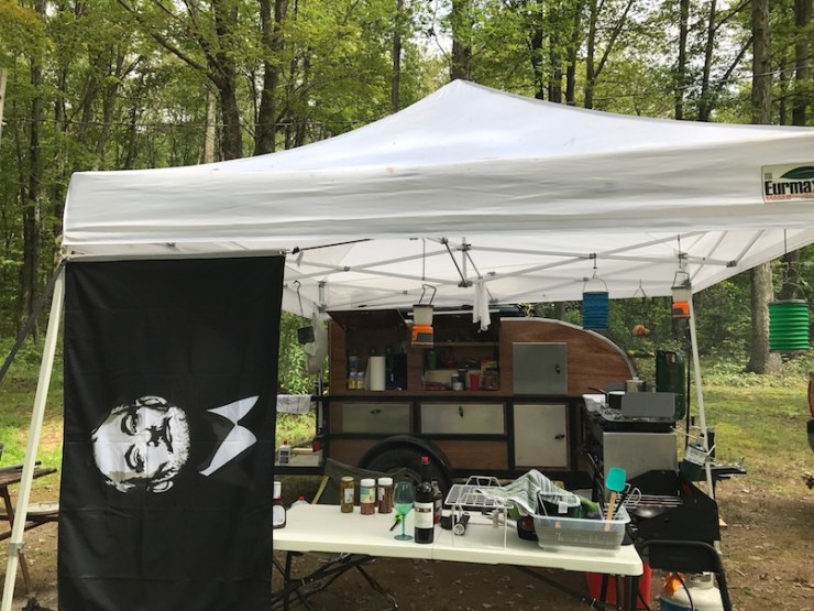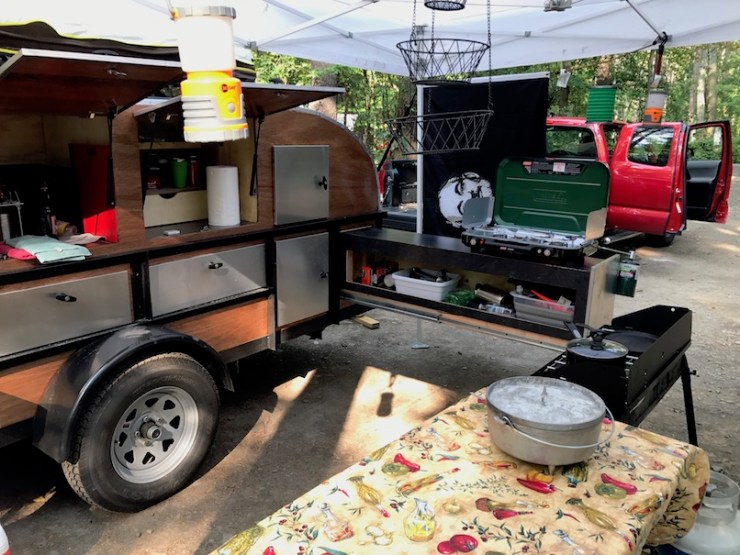 I grade the effort a solid B. The unit came out largely as designed. And it works largely as designed. It will never be mistaken for a professionally crafted camper, but it’s not bad for a dis-jointed prototype unit with no proper plans and built by amateurs. The tarp system I designed was completely unusable so I went for a square fold-up portable unit.