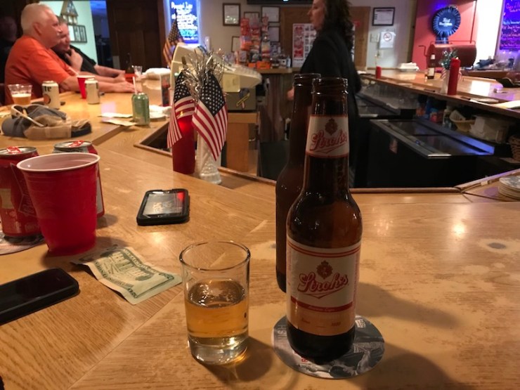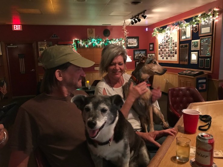 We finished our meeting and walked up to the American Legion for more philosophy and drinking with the locals. Dogs are allowed anywhere in Perry County so they went with.