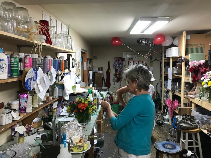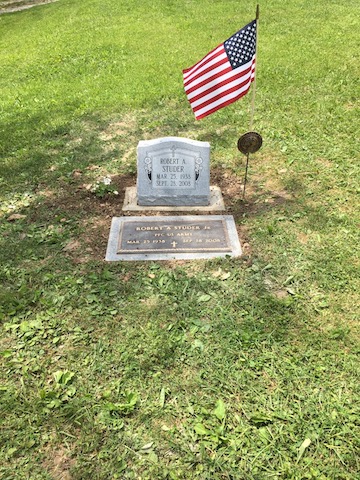 Some time ago, we had agreed purchase a new headstone for Uncle Bobby’s grave. It has been sitting in Terri’s shop for the past few months and a spontaneous decision was taken to get it mounted by Memorial Day. So Saturday, we all set about doing our bit. Larry and I collected materials and dug the foundation hole and mixed and poured concrete. Terri hustled in the flower shop for Memorial Day orders and Shannon ran flower deliveries all over the county. She also brought us lunch and tea and later her and Trent put about 100 bags of mulch in the flower beds at her house–an annual tradition.