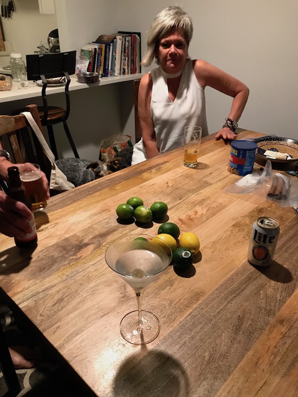 Lovely night with big brother and sister. Larry and Terri and I converged on my abode around 5:30 and the inevitable fun ensued. We drank, ate, laughed, walked dogs, listened to music and drank some more. And of course a martini.