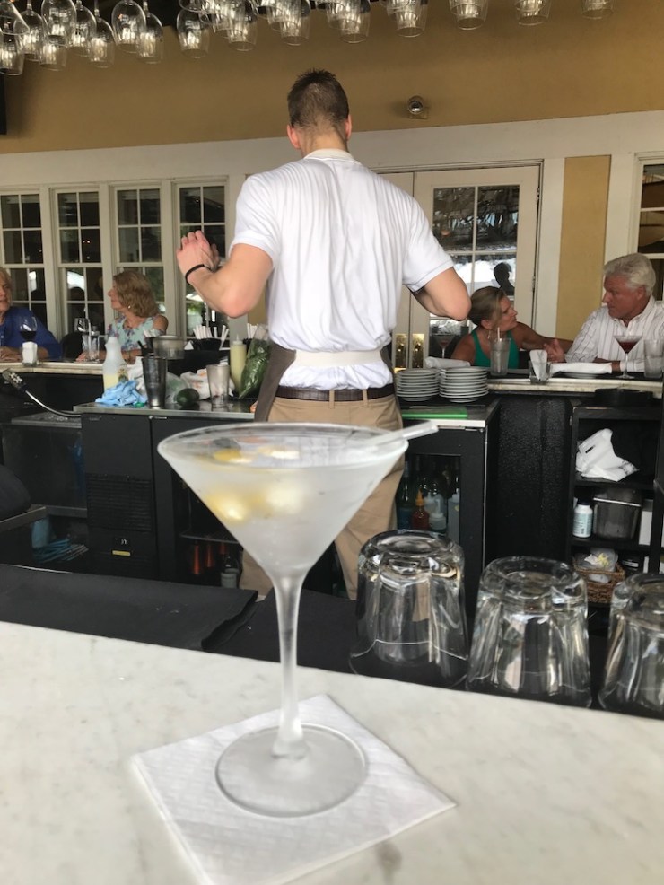 Tito’s martini with blue olives.