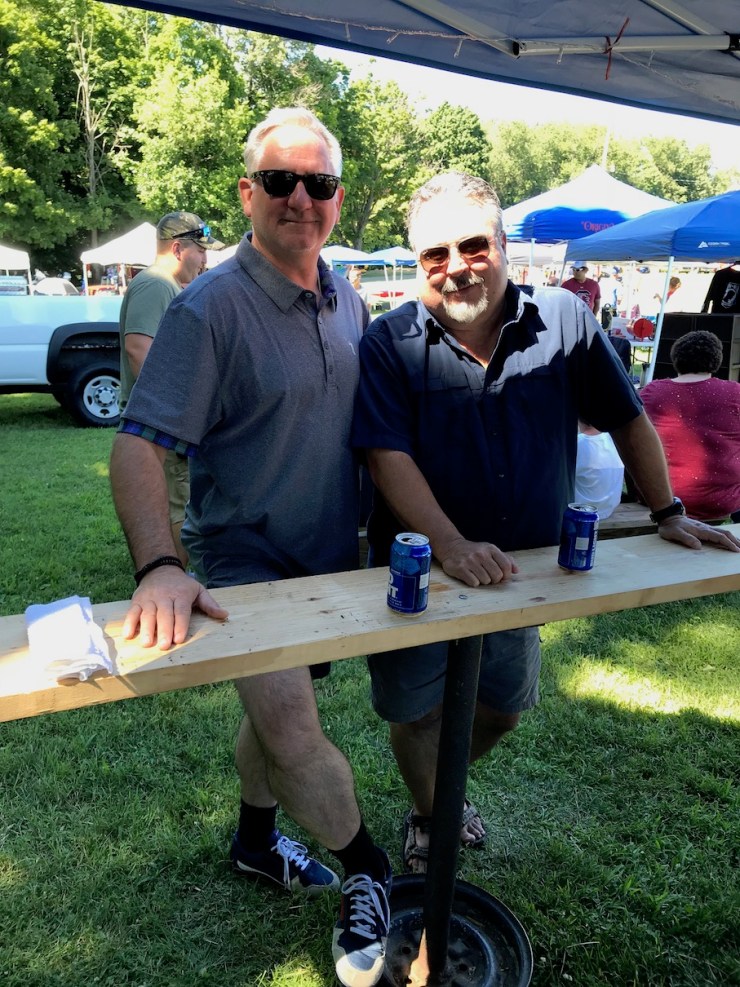 Sunday night now. Greg Hamilton came up yesterday and we went to Perry County and drank long and hard. Beer for a few hours while Larry, Shannon and Terri helped with the pre-firework festivities. Then we rode the golf cart to town and had beer, burgers and whiskey at the Hole-in-the-Wall. Strange you can drive around all day in a golf cart and no one seems to care, even after drinking for several hours. So we took a few joy rides around the circle and headed back to the park to watch the auction and pick-up Shannon. Shannon got a little rambunctious on the golf cart ride home and sent me flying as she took a hard turn into her yard. But me and Mandela were fine—landed safely in the way dogs, little kids, and drunks do.