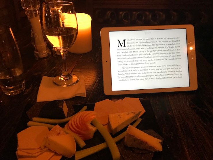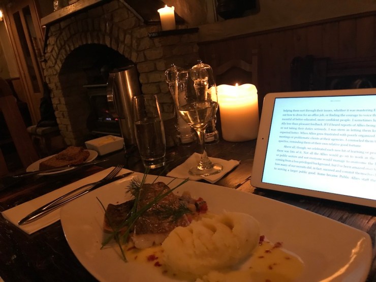 I sat in the bar and was the only person there. I started with a lovely gin and tonic with a local gin called ShortCross. I sat in front of the fire and read from ‘Becoming’ and enjoyed my cocktail.