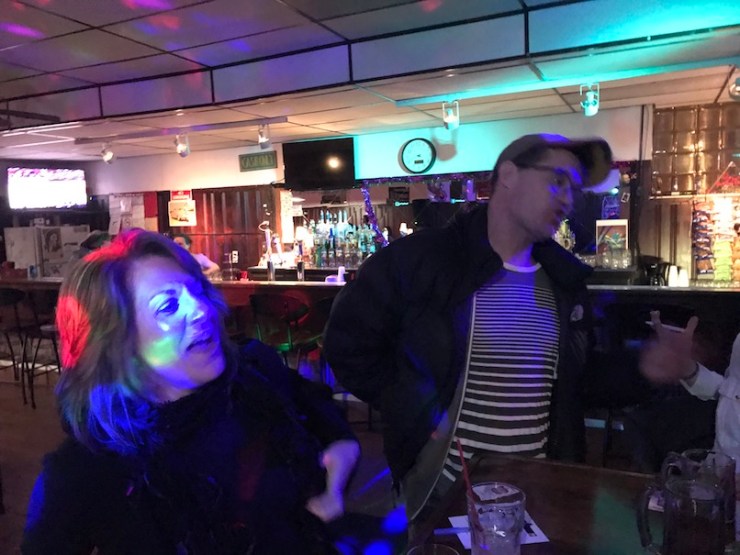 They had a DJ. And he had the deluxe kit with lights and a control panel that looked like a NASA Engineer’s station. So we hung out and drank a lot of beer and vodka drinks and ordered pizza and eventually became members. I don’t remember the exact details but a customer came over and talked Jen out of her credit card and for $20 we paid the annual dues for all four of us.