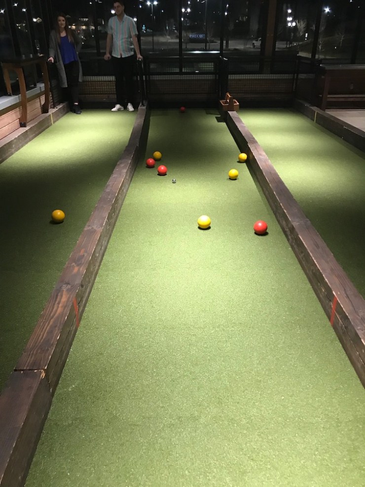 I beat Lisa 6 games to nil. She folded like a card table when the action got intense. It was painful to see such a proud competitor get so completely annihilated on the hallowed bocce ground of the local Pinstripes.