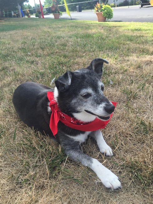 She had a dignity in her ways and movements that is unusual. She had a multitude of facial expressions using her ears, tail, and head positioning to express her amusement, concurrence, misunderstanding or disapproval. She dignified many cafes and coffeeshops, lying under the table and people-watching. Many restaurant workers and retail employees came to love her and bring her small treats and always some good loving and rubs. She was well known to the Home Depot crew and eventually became conditioned to believe that anyone wearing orange would have a treat for her.