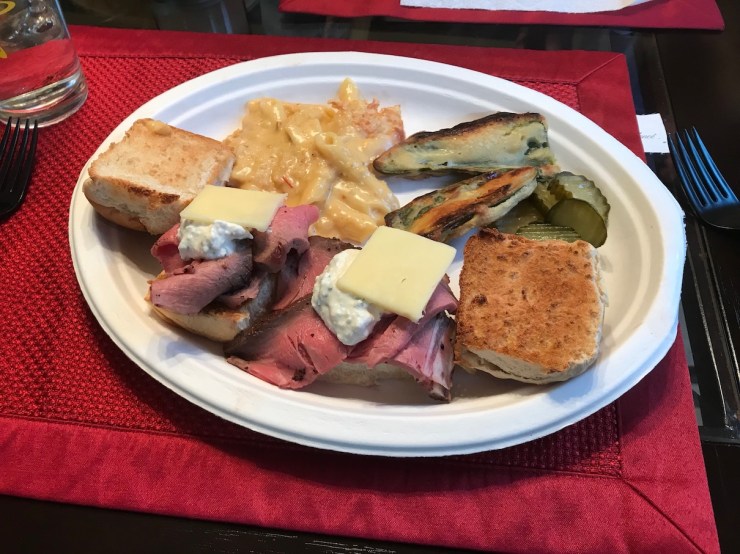 On Saturday night, before the race, we had smoked prime rib sliders with horseradish sauce, fried jalapeños, and Irish Cheddar. For sides, chipotle Mac-n-Cheese. So a terrific meal before the big walk. After, Larry and Martin played guitar and we all sang. Pretty poorly I imagine, but with spirit.