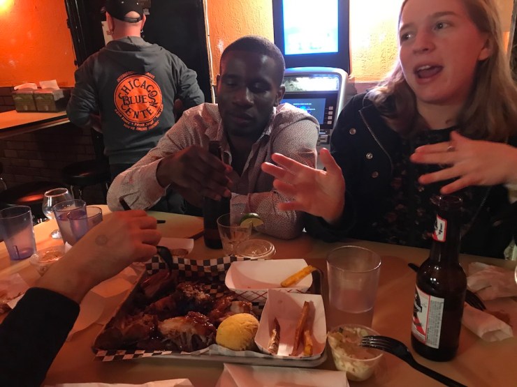 The Premier crew are all just so hip, and smart, and cool that I feel lucky they will hang out with me a bit. We met at Monk’s Bar, which is around the corner from their office. Nick and I officially had a martini and afterwards we stuck around for beers. Later still, a few of us went to Kingston Mines for some excellence Blues and food and a few more drinks. We drank some kind of Chicago moonshine that I’ve never had before. It was truly awful–somewhere between grappa and Ouzo, but more like the worst parts of each.