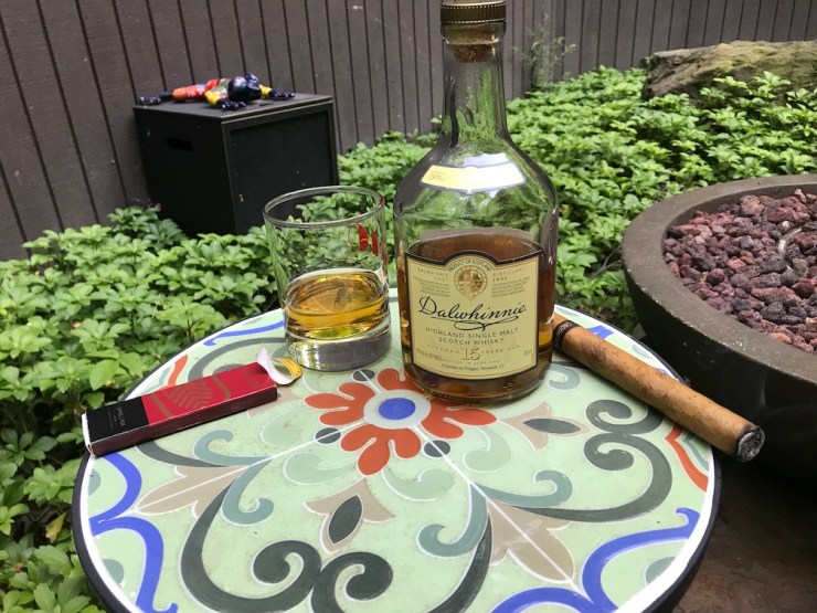 Home on the deck now. Beautiful night. I ubered to the shop and picked up the R1200 from maintenance prison and rode around the city for an hour. Got some take away and ate at home with wine and the NY Times and am now out back with the bottle of Dalwhinnie 15 and my last good Cuban cigar.