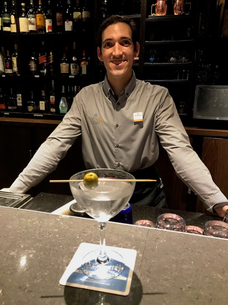 The feature pic is actually from Saturday night when Cindy and I had a terrific meal, but I had two very good martinis at the hotel bar after I arrived. Carlos, an actor, working as a bartender, did not disappoint. I first had a Sapphire Gimlet and followed with Hendricks with Olives.