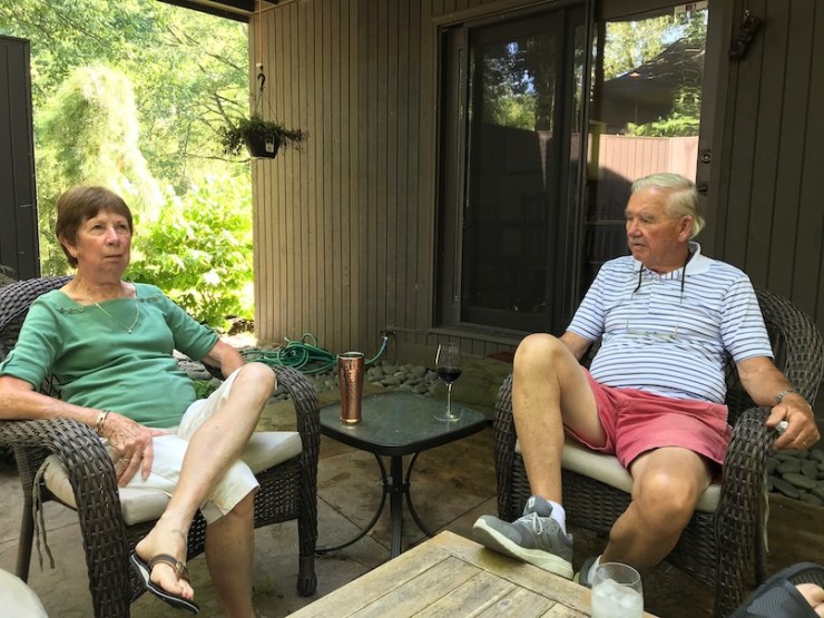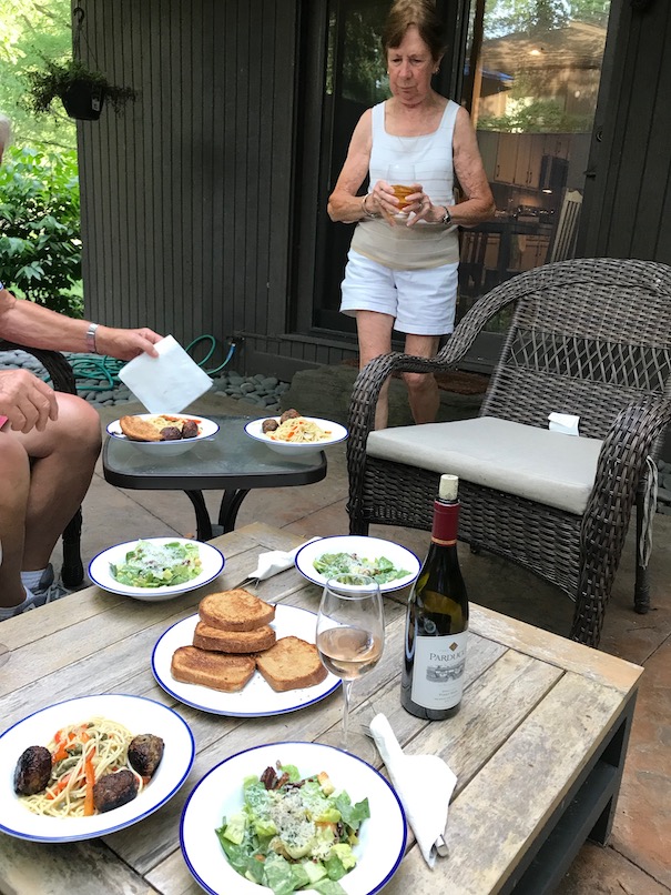 Really great visit with mom and dad. They met me Wednesday afternoon near my office in Beachwood and we came home and made a fabulous dinner of smoked chicken and fresh corn salad. Pear and cheeses for dessert. On Thursday, I tossed pasta with capers, red peppers, onion and fresh garlic and topped it with lovely meatballs. Both nights we sat outside and chit-chatted and caught up on everything. They left Friday morning just after I left for work.