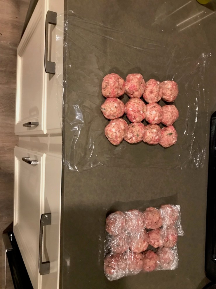 There are some random photos here. One, is of my colleague Jessica’s dog. Her name is Cookie. A very very sweet and cute little hound. She is older. She has an underbite that gives her a unique look. Just the sweetest dog ever. I made some delicious meatballs and put them in the freezer, only to discover I had a bunch of meatballs already in the freezer.