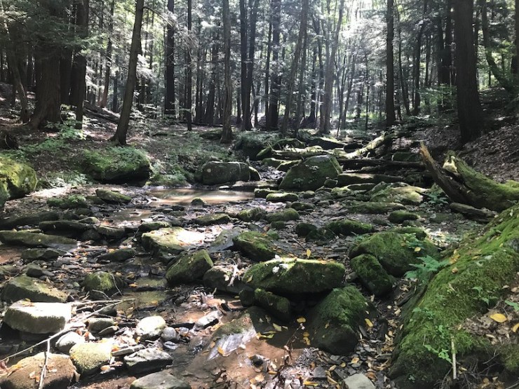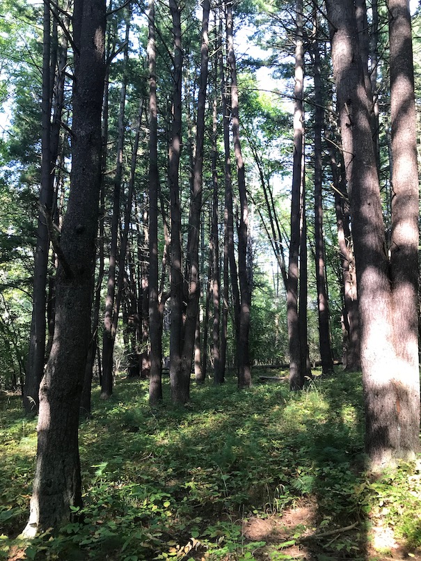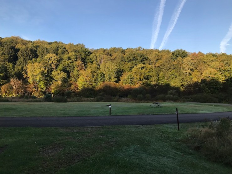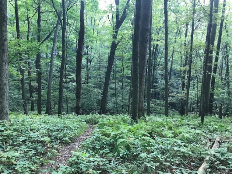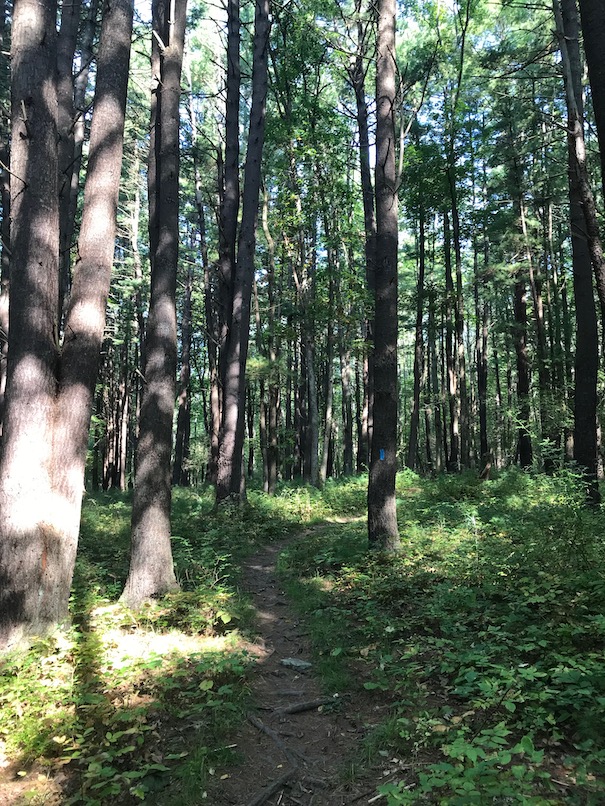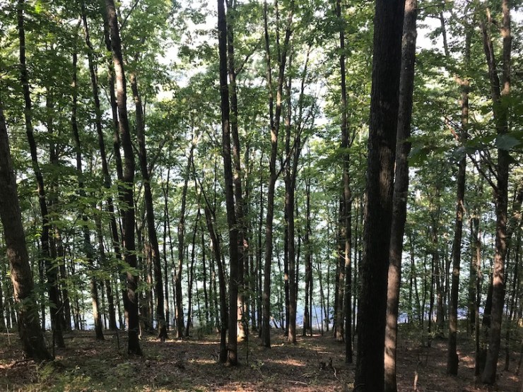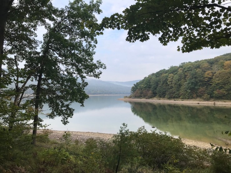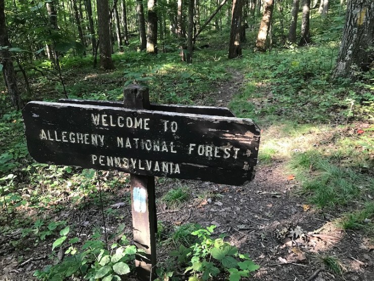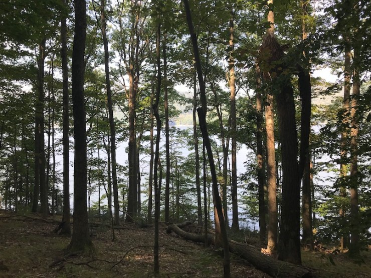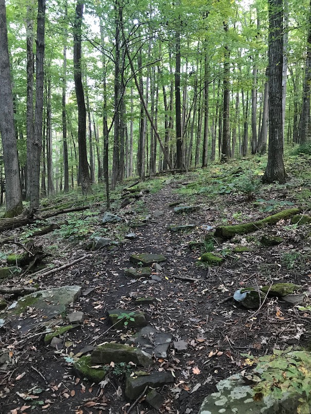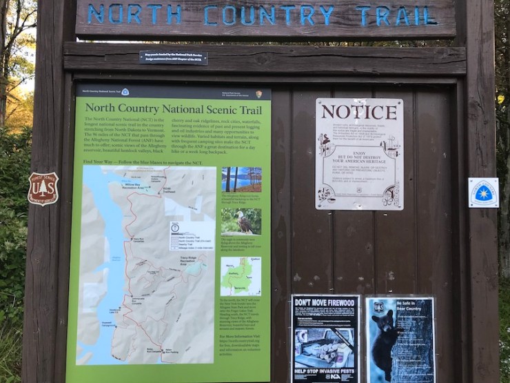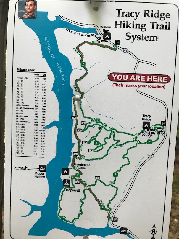 Pretty terrific weekend all in. Very low key. I had no cell service at all so was without news or access to information. So lots of reading and cooking good meals. I got in 3 good bike rides and two hikes. On Sunday, I rode only 11 miles, but there was a nice 3-mile climb at the front end. I stashed my bike behind a tree at the trailhead to North Country Trail where State Route 321 passes near Sugar Bay. The trail map indicated a 10-mile hike back to 321 at Willow Bay. But, as these things go, I started out going the wrong direction. After about a mile I figured out I was heading south and so backtracked and got myself sorted. So I added two miles there. Great hike. Very beautiful old growth hardwood forest that wraps around Allegheny Reservoir. The trail was very well marked and I only saw around 10 or 12 people the whole day. I was hoping to see a bear, but had to settle for a single coyote. I had a mile hike back to my car at the campground once I exited the trail, so 13-miles. Good day.