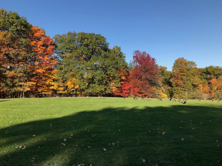 I stopped and snapped this feature photo as I was leaving the Cleveland Clinic grounds at TRW in Lyndhurst. It is a stunningly beautiful corporate campus–with a colorful, tree-lined, 1/2 mile winding road leading to the stylish building. A true architectural masterpiece. There was a big flock of geese on top of the hill where I took this photo.