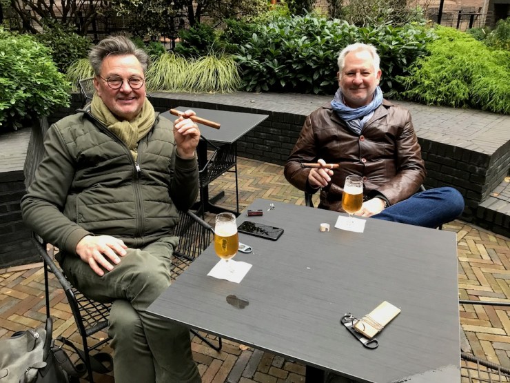 At AMS waiting for my flight to LCY. Slightly delayed, but hopefully we hold this time. Good visit with Sjoerd and Onah. They’ve slowly become very close friends over the past 20 years. Our routine is set when I visit on these long weekends. Early dinner at home on Friday night and then Sjoerd and I head to the Royal Taste Hotel bar for the night. Onah visits her friends or sometimes enjoys her time with Bear. Sjoerd and I take the train to town—sometimes Onah picks us up after a long night of drinking and smoking cigars and sometimes we bring the train back home. Saturday we walk the city to get exercise. We nearly always have a drink and a cigar at The Grand Hotel—or if weather is bad, at the big cigar store. Saturday night is dinner at home and relaxing and chatting and visiting.