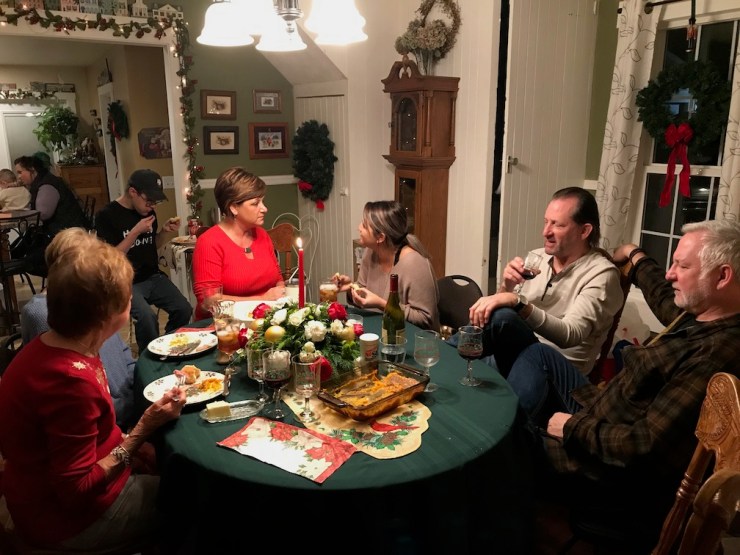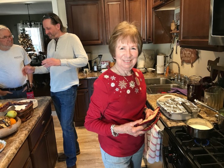 And, more crazy shit on Christmas. It’s been 30 years or so since dad drank. He quit because he went on medicine for arthritis and he was not allowed to drink while taking that medicine. So…..the doc changes his medicine and Dad immediately joins a wine club. Christmas Eve, he made a valiant effort to keep up with his kids and their friends, all hardened professional drinkers. Result, getting to see Big Ed Falling down drunk. Slurring and unintelligible. It took is 10 minutes to get him loaded into my car and another 10 minutes to get him out of the car and into the house. He fell in the bathroom. Mom and I finally got his sweater and pants off and got him into bed. We went to the living room to have a nightcap and a laugh about the whole situation and after a few minutes we hear a loud crash. Dad rolled right off the bed and fell the 4 feet to the hardwood floor. We moved him to the couch and that’s where he spent the night.
