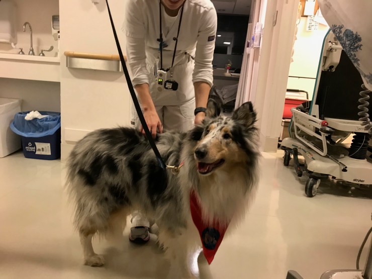 Brian went in hospital unexpectedly on Thursday. They thought he had a mini-stroke but they are now telling him he is a diabetic? Seems odd to confuse those two things. He has some follow-ups next week. I stopped to visit him on my way home and got to meet a super cool therapy dog named Indy.