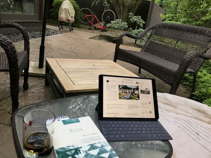 Lovely night. Just very very nice. I am daily reminded of what a blessed life I have. I am sitting outside on the patio. It is warm and beautiful. I just finished an amazing meal, because my momma made sure all of us not only know how to cook, but truly enjoy it. I had dinner with a lovely Bordeaux. I’m having a great scotch now with a robust Nicaraguan Oliva cigar and getting ready to settle in to read more of Rick Bass.