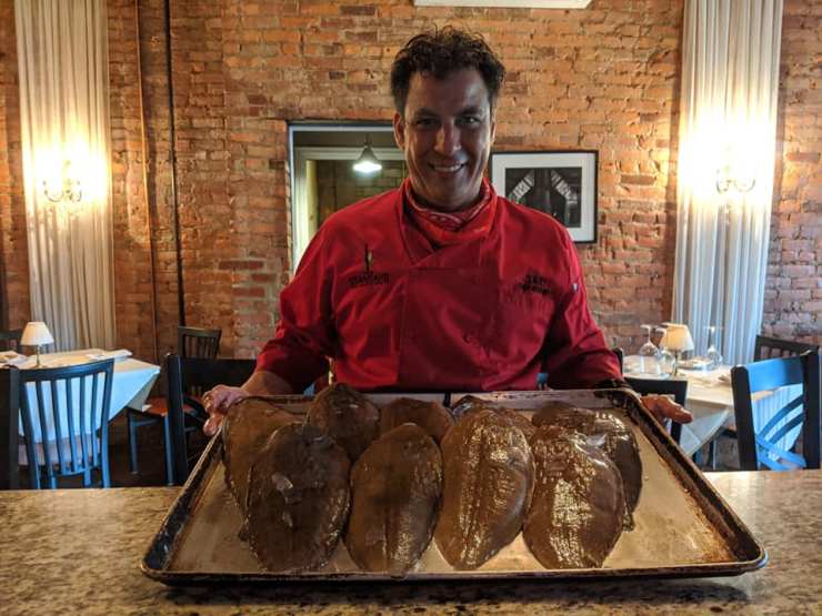 Said, as always, had a great spread. Fresh dover sole, massive shrimps in paella, and a roasted goat.