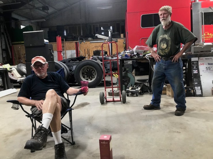 I brought Brian’s dad, Rusty, a bottle of Red Breast whiskey because he is super cool and also has been helping out a bit here and there. He came by last Saturday to see how we are progressing and I gave him the bottle. He opened it up and I got some plastic cups and we sat in a circle, 8 or 9 feet apart inside the big bay of the trucking company, and we drank the whole bottle along with a few beers. Sort of put a stop to work that day, but was an excellent time.