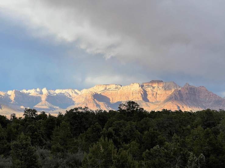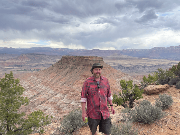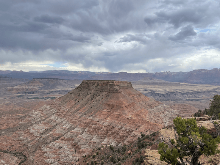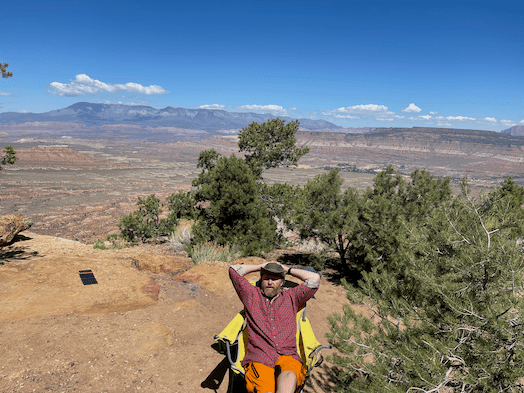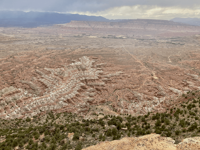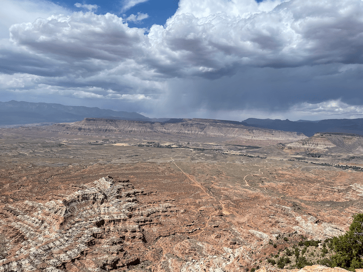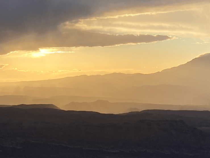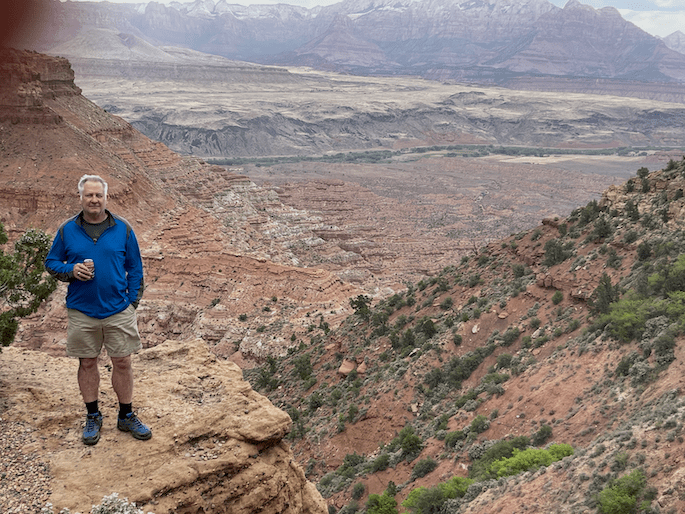 This story starts and ends in Salt Lake City. With my very fine nephew and his wife and son. Some of my best friends over the years. Saturday morning, Shane and I rode in the excellent trail system high in the hills overlooking the city. My lungs were burned after the first few climbs; not surprising given my lack of riding the past few years. But it was nice to be out. On Sunday morning, we were joined by Mark, Tekoa’s brother-in-law, and after loading the truck we drove the 4.5 hours to Gooseberry Mesa, just outside of Hurricane Utah and across the valley from Zion National Park.