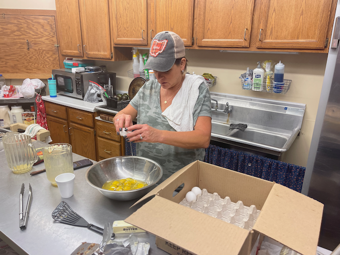The weekend past was one of the many fundraisers that our family manages. Shannon and Mom run this one. This one was to raise money for the impoverished in the community. At Christmas, they use these funds to buy food and presents for families that are struggling. I don’t know how they identify the families. I need to ask. It was a lot of work but a good time. I made 5 quiches on Saturday and on Sunday cooked a massive amount of hash browns and scrambled eggs. Terri and Larry did omelets to order, mom did pancakes and waffles and Shannon directed everyone. Melissa ran the food line.
