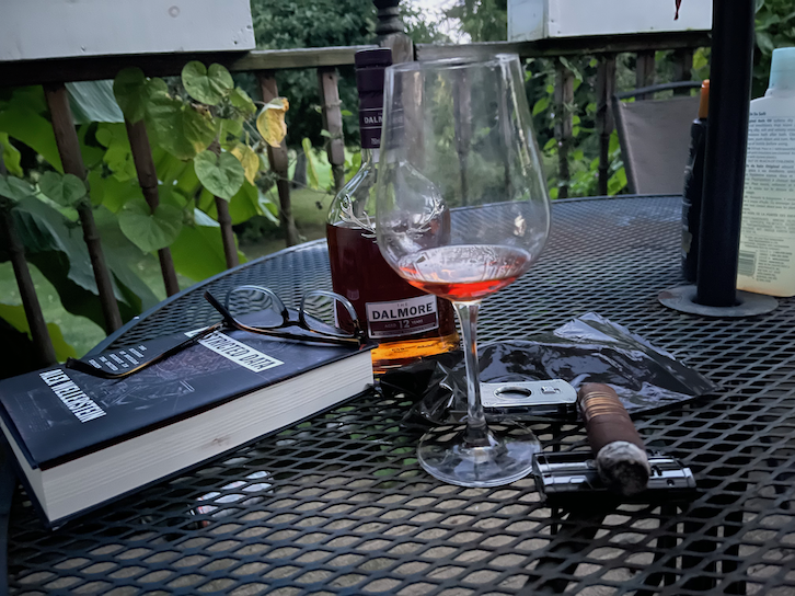I sat on the front porch and had a cigar with a book and whiskey. I enticed Terri out for a while and she sat on the swing with a blanket on her lap and we talked a bit. It was nice. We mostly talked about family stuff. Shannon’s perpetually working too hard and taking on too many commitments. Steve’s depression. Ryan’s addiction. Heidi’s cancer. It’s a nice front porch. Very Americana. There are two cats that are always stalking around—taking every precaution to be stealth but unaware that I am watching. Small town life.