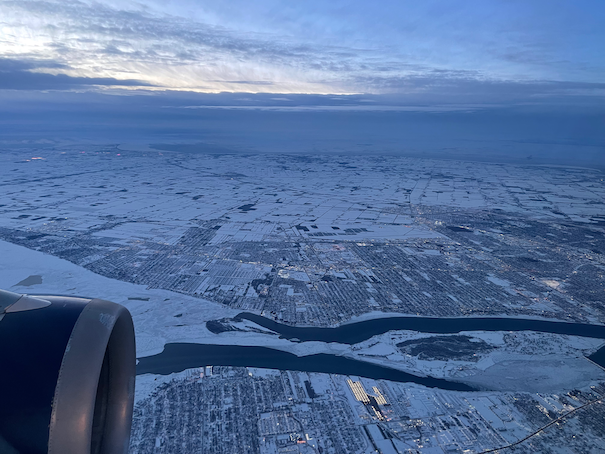 Our departure was delayed by an hour and then the next leg was also delayed by a bit. I finally landed in Columbus at 10:30. We were able to deplane at 1:00. 2 1/2 hours we sat on the airplane while the gaggle of field crew tried to clear the snow away from the tracks of the jetway so they could drive it over to the plane. Time after time the jetway got stuck. Finally they towed us to another gate and the exact same fiasco repeated itself. They then towed us back to the original gate and we finally got the fuck off the plane.
