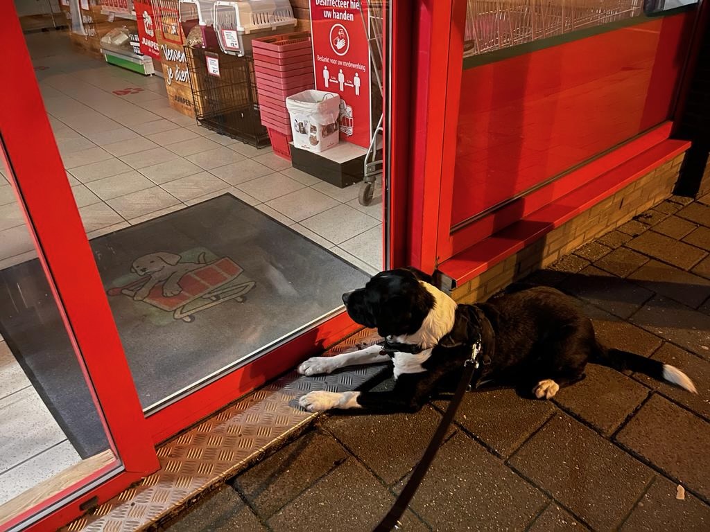 I love the picture of Bear below. Sjoerd takes him to the pet store where he always gets a treat or two. On this day the pet store was closed but Bear refused to leave just as he refused to accept that a pet store would ever be closed.
