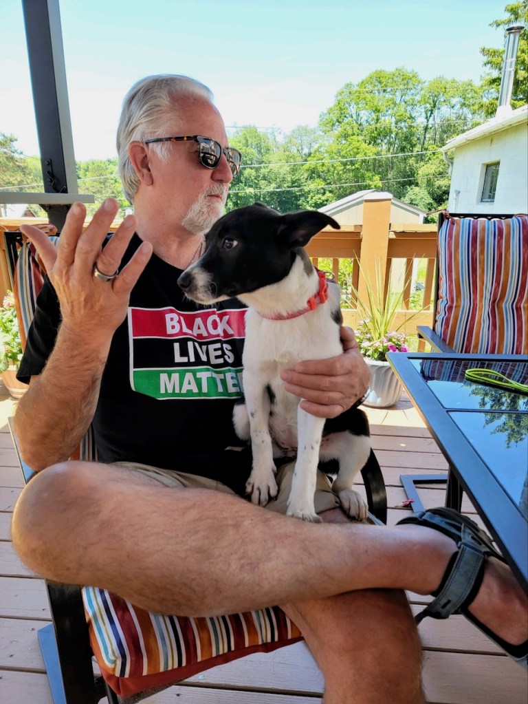 And. And. And. We are all busy here training the new pup. I picked her up from a shady dog dealer in Amish country, not far from Wooster. I hear about puppy mills, but not sure what the actual differences are between mills and breeders. I have no doubt there are ethical differences in how all these folks treat animals, but I don’t know how to differentiate between them on-line. I know some breeders won’t sell some of the dogs I was interested in without cutting off their tails, which I do not support. So Marti has a tail and will be keeping it. Marti is short for Martini, which seemed an appropriate name. Brit came up with that. She’s the clever one.