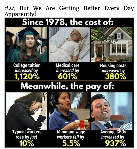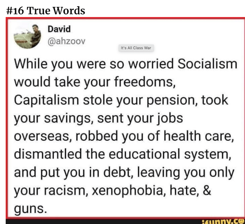 I’ve just included some meme’s to speak on my behalf. Will there be a tipping point in my life? Probably not. Probably just a continued long slow decline of what was once a decent society for around 50% of the white people in the country. Our exceptionalism was always based on the rich and well connected whites.
