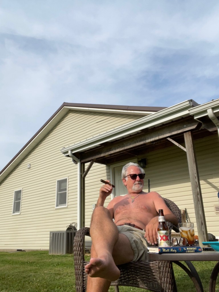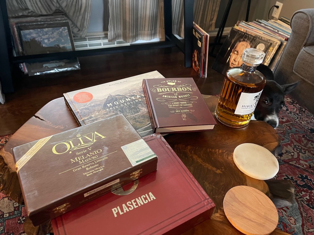 Speaking of martini’s, this week was an excellent vesper. Here at home—with John Price and Mark Knopfler on point for entertainment. I used Ketel One Citroen vodka with Hendrick’s Gin, in equal proportions and served up with blue-cheese olives. World Fucking Class — right here in farm country. Later me and Marti sat outside by the fire. I smoked a cigar and sipped excellent Japanese whiskey while Marti chewed up a beach towel.