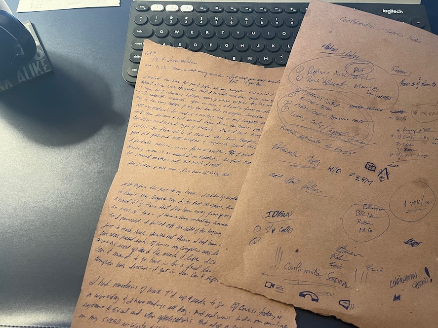Saturday morning, I scoured the house for pen and paper. I needed to write things down. It’s just something I do. How else to document all the silly little observations I make each day. After going through every room, I finally found an old but working pen at the bottom of a box of electrical supplies and cut some squares of paper off the big roll I had brought to protect the floor while I was staining the trim. So I wrote for 30 minutes or so, most of it nonsense that would not find a permanent home, but the process is important to me.