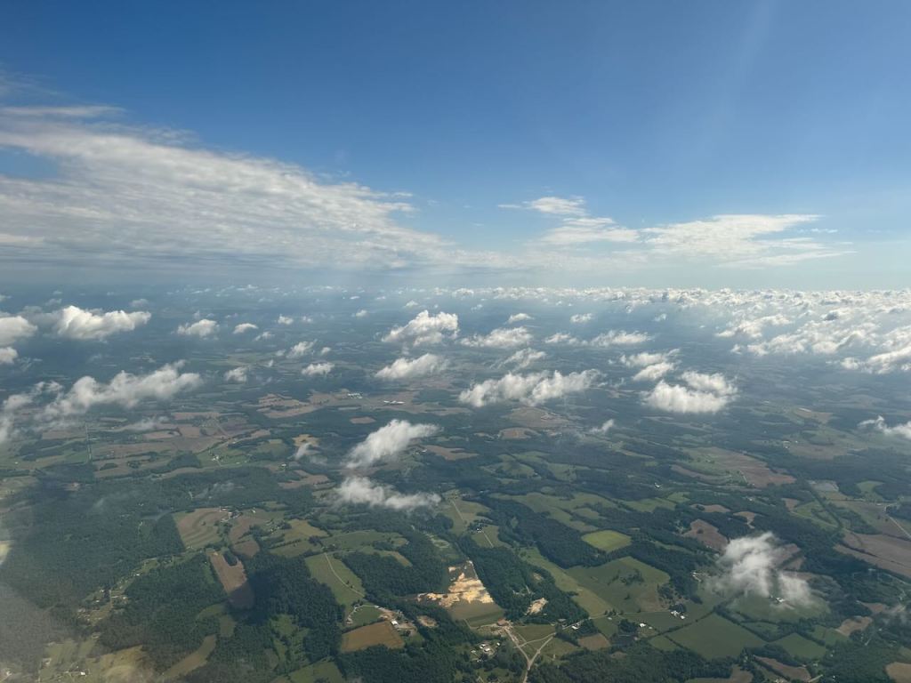 The trajectory on my flight back from Boston came in right over Somerset where my home is in Ohio. I only recognized where we were because of the huge dinosaur that sits in a field hard off the I-70 exit by Buckeye Lake. It’s interesting seeing your hometown from the air. It provides perspective about space and distance.