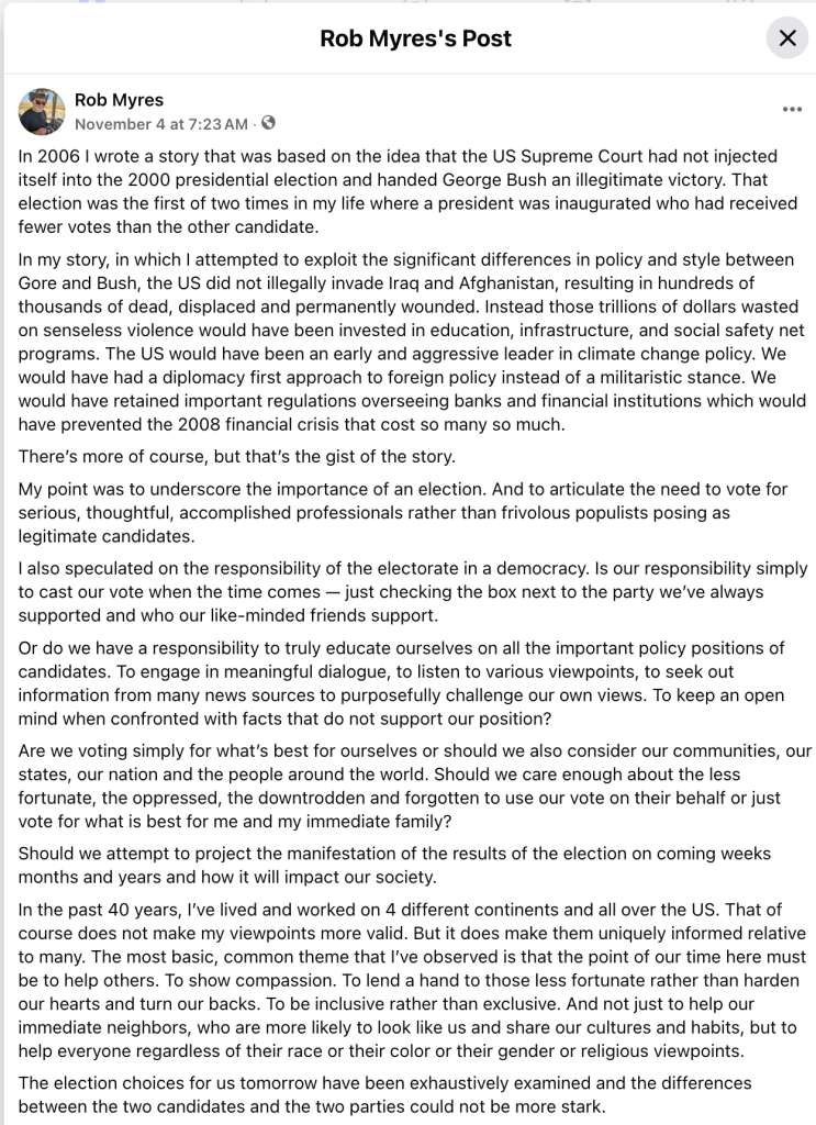 Brittany and I had a nice dinner one Saturday night at Fireproof — a lovely Tapas style restaurant in Short North. Big news was there was a Nazi march in Short North earlier in the day. So it begins — the implicit threats from MAGA supporters that will now be tolerated because we have a fascist president elect.