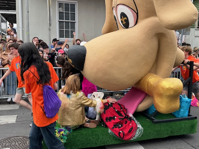 New Orleans is one of those cities where the social strata is right there in front of you. In the shadows, many are not having fun. On the side streets are the homeless. And stray dogs who are not as lucky as the ones in the parade, who are loved and spoiled. Our good times are only appreciated fully because we know what lies on the other side of good fortune. Despair. Trauma. Sadness. Darkness.