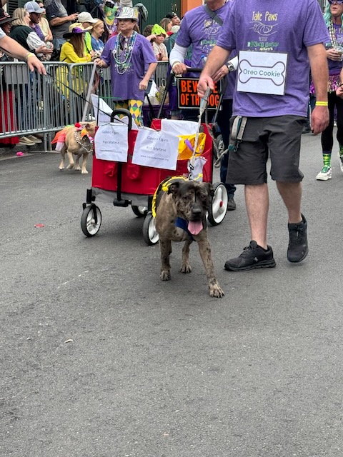 In New Orleans, a top 3 event. Brittany and I happened to hear about the Krewe Barkus parade in the French Quarter. A dog parade. Thousands of beautiful & spirited dogs of all sizes, breeds, and ages. Many were pushed in strollers—too old to make the walk. Many were costumed or adorned as were their parents and handlers. Tails wagged. Tongues hung. Dogs walked and ran and strained on leashes. We stood alongside the road with thousands of people and adored these beautiful canines. It was amazing. Spiritual really. They are just such pure creatures. They have no agenda other than to love and be loved. They want only a scruff, a snack, and the occasional walk. And to be near their pack. That’s it.