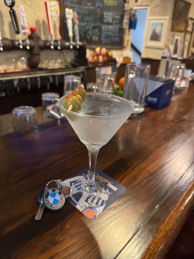 I did escape to ride the little Blue Triumph over some county roads. Then a stop at Strongs for a beer. I had my book with me. The Razor’s Edge. Sitting there in the sunshine at the little outdoor table with a frosty beer and a good book — well that is just about heaven. Pretty great.