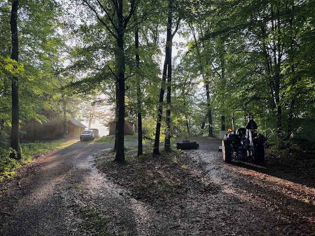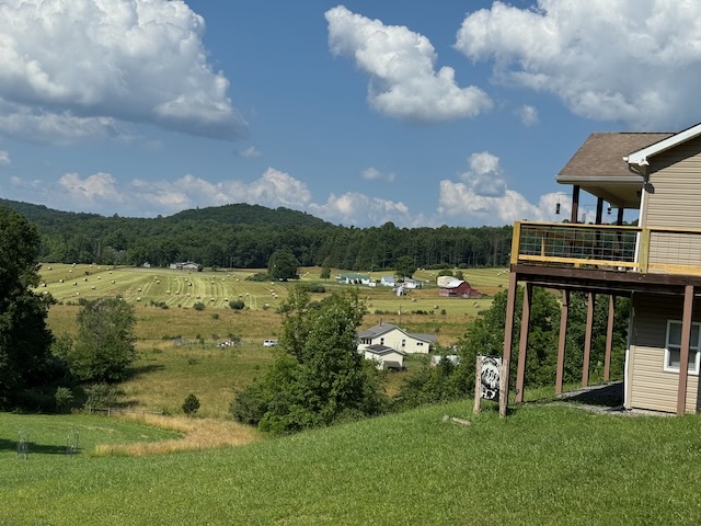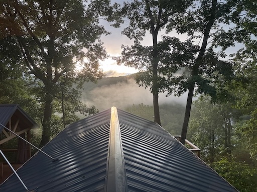 The other home is set in a beautiful space in Appalachia – on top of a ridge looking down over the Greenbrier River. This home comes with a 2-car garage and another outbuilding, outdoor kitchen, a large detached treehouse bedroom accessed by a skywalk (mid-construction), a big deck and 16 heavily wooded acres. This is Black Dog Ridge.