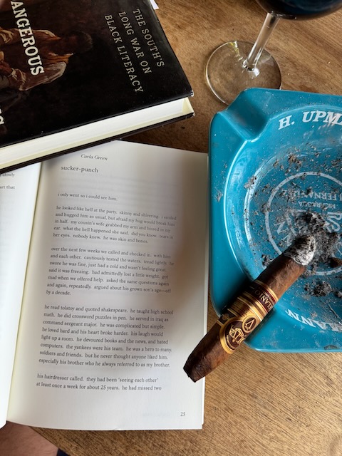 I sat outside for a long time the other night. In Ohio. Just a cigar and a little whisky. No book or technology. The air was clear from a late afternoon rain. The yard is pretty — freshly mown. The dog is with Brittany which brings some peace but also a void. The deck chairs are organized and the garden growing over their beds. Terri has planted some new flowers and dropped in a few lovely, very subtle solar-powered lights that give off a soft glow. There are a lot of fireflies which is nice because it seems they are more scarce than I remember from childhood.