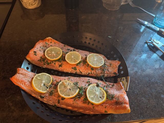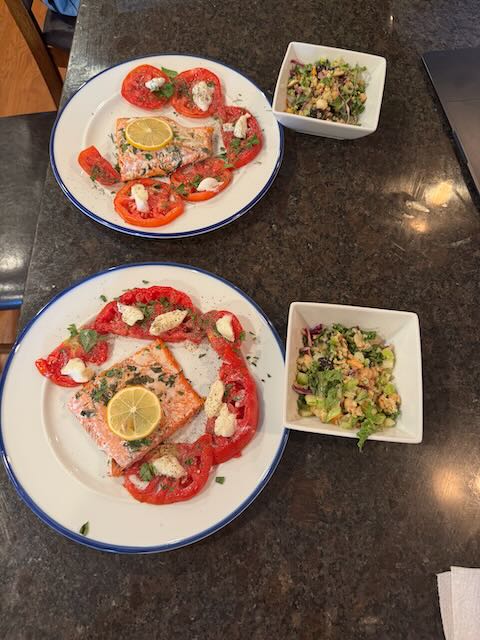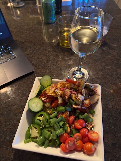 I had a little smoked salmon and some good Amish cheddar for a snack. But no wine. I can’t start this early when I have to be up at 11:30 at night. It’s a concession; eating without a glass of wine. But one I need to make for now.