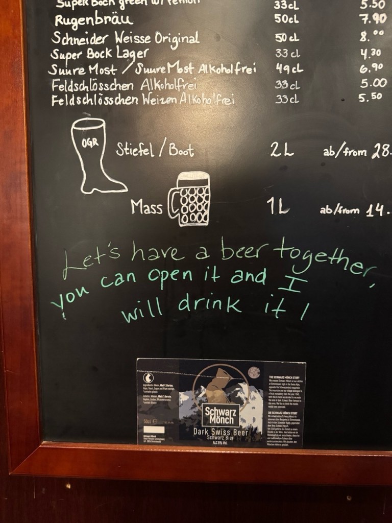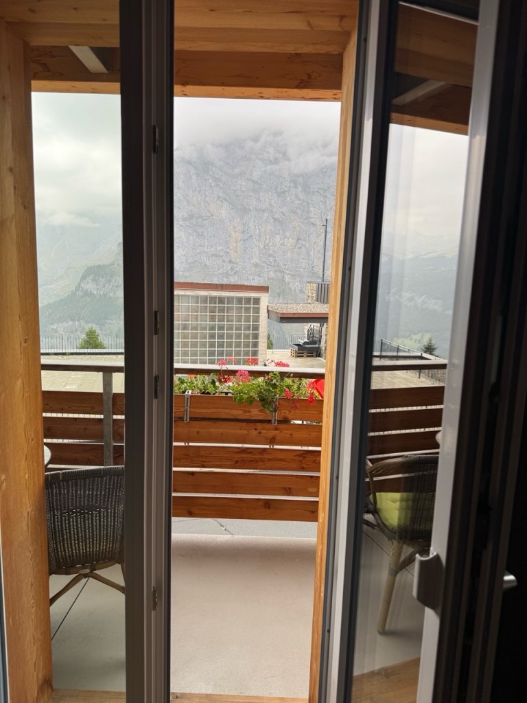 I am staying at the Eiger Guesthouse in Mürren which is fine. I am solo on this trip and staying on budget. But I have an amazing private room with a view of Eiger and Jungfrau that neither words nor iPhone can capture with any integrity.