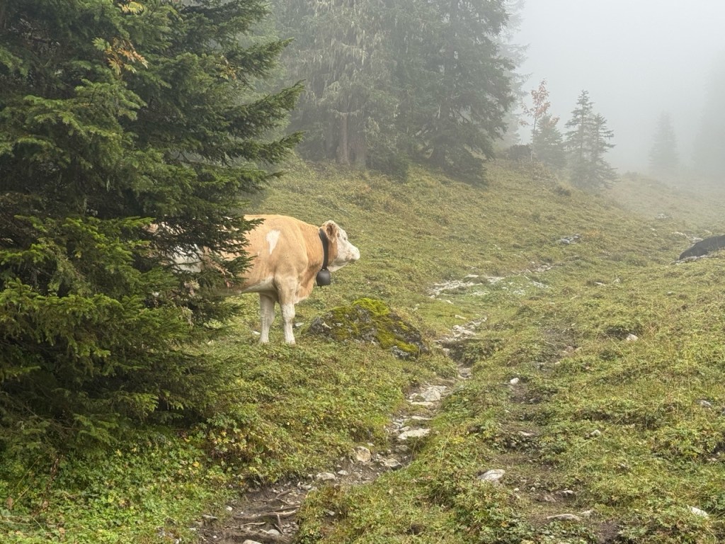 First. I had forgotten to completely charge my phone. So by the time I neared the top in complete fog and on a very steep, very wet trail, I may not have been able to call for help if I broke a leg or was seriously injured. And if I was badly injured, there would be no helicopter rescue due to the whiteout. It would have been just me and the cows for the rest of the day and the night.