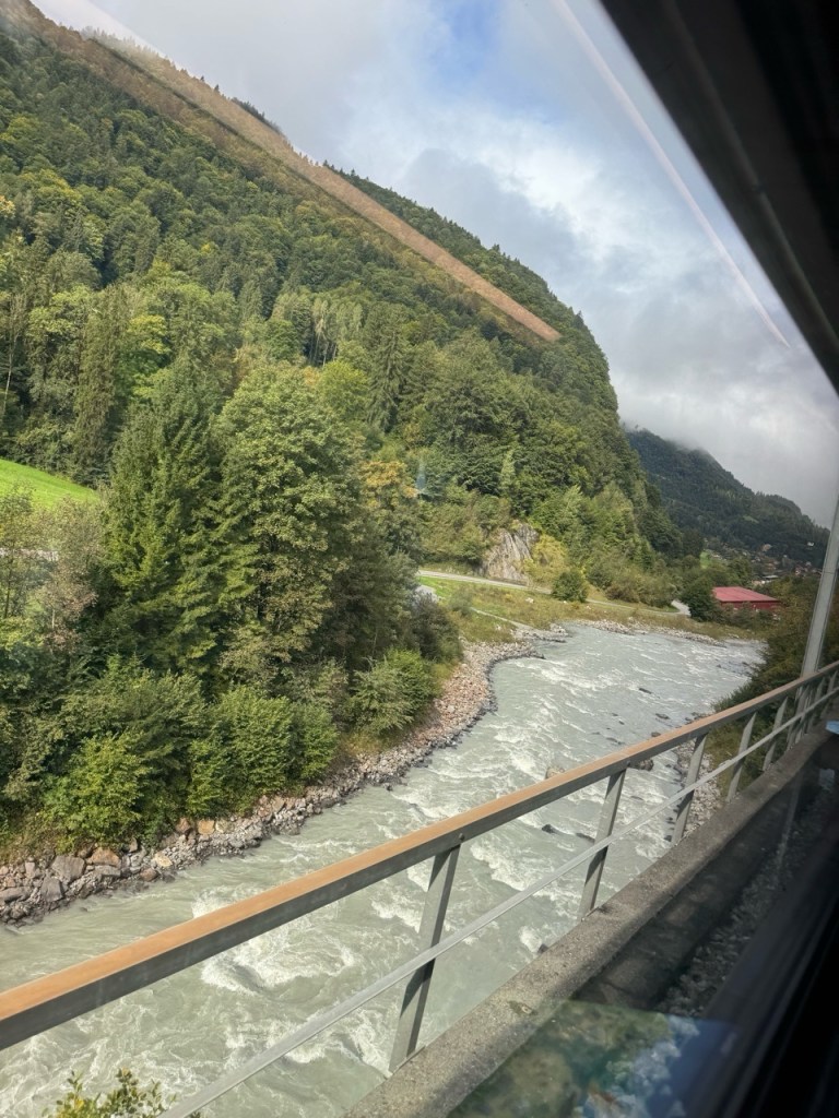 We switched to small gauge rails for the final miles into Lauterbrunnen and as we gained elevation. The train had a special track system to help get up the hills. The windows were open on the trains which was magnificent.